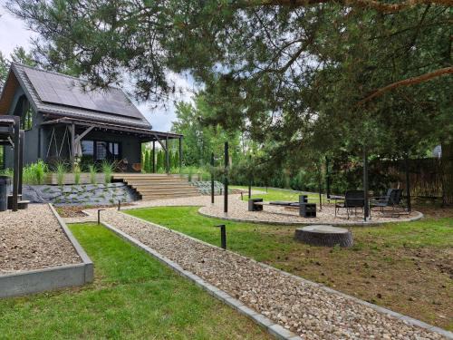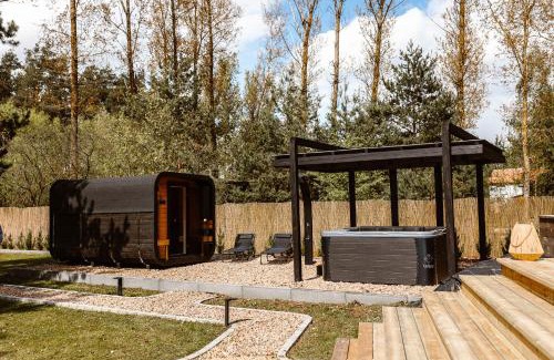 Providing massage services, Lizbona nad Bugiem provides accommodations in Gulczewo. This property offers access to a terrace, free private parking, and free Wifi. The villa has an outdoor fireplace and a sauna. The air-conditioned villa consists of 1 bedroom, a living room, a fully equipped kitchenette with a dishwasher and a coffee machine, and 1 bathroom with a hot tub and bathrobes. A private entrance leads guests into the villa, where they can enjoy some wine or champagne and chocolates or cookies. The property has an outdoor dining area. A baby safety gate is also available at the villa, while guests can also relax in the garden. Warsaw Modlin Airport is 34 miles away.