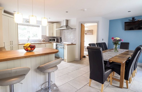 Amenities: Oil-fired central heating. Electric oven and hob, microwave, fridge/freezer, washing machine and tumble dryer in the utility. 4 x Smart TV. Sky. WiFi. Pool table, ping pong table and dart board. Fuel and power inc. in rent. Bed linen and towels inc. in rent. Highchair, travel cot, and 2 x stairgate available. Private driveway for 4 cars. Enclosed, elevated garden with decking, lawn, furniture, and bike storage. Two well-behaved dogs welcome. Sorry, no smoking. Shop 3.8 miles, pub 0.8 miles. Note: There are steps up to the garden; please take care