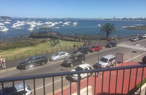 One of the nicest located buildings in all of Punta. This 13 story apartment building is on the “Rambla” (boardwalk) just before the Marina on the peninsula. All bedrooms have exceptional views facing the water and “Isla Gorritti” on the “Playa Mansa” side. See spectacular sunsets while sitting on the balcony enjoying a drink. 4 bedrooms, dining, living, kitchen, maids quarters with laundry machines. Sleeps 8 comfortably and independently. 3 full bathrooms. Walking distance to many fine dining establishments, downtown Gorlero Street, shopping and Casinos including the famous Hotel-Casino Conrad. 2 blocks from the Arts Festival Square. No need for a vehicle once settled in.