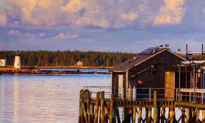 At night, look across the harbor to the iconic Prospect Harbor Lighthouse, (you have an unobstructed view) under a starry sky.