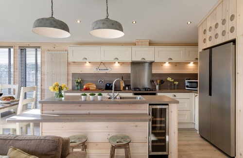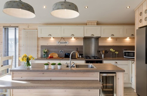 This attractive ground-floor lodge rests in Runswick Bay, North York Moors and can sleep seven people in three bedrooms.