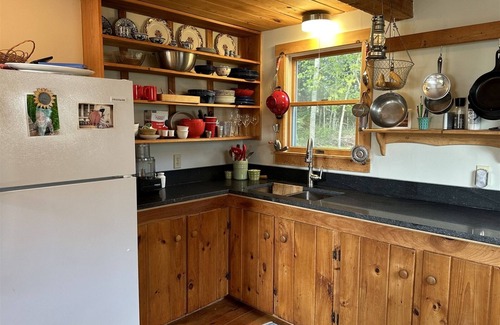 If you want to launch a kayak from the working dock in front of the house, you are able to do so if they aren't working there at the time. Guests must store kayaks and other watercraft by the cottage when not in use. It is a rocky shore so other access to the water isn't available unfortunately with ease.