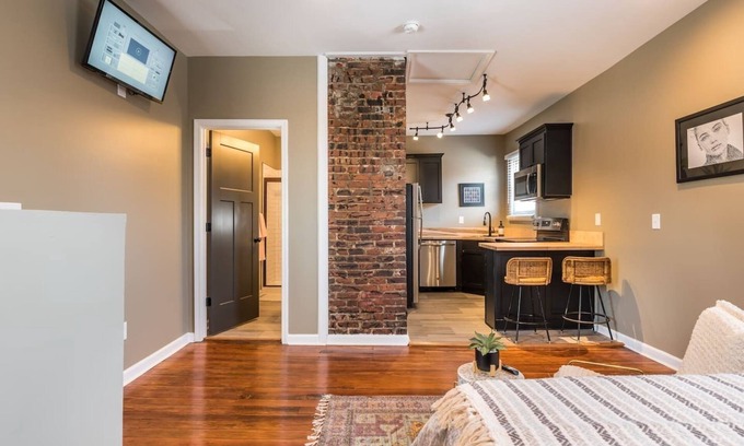 Welcome to the Local Legends Lounge! This is the premier couple's or solo traveler guest suite in Louisville! This exceptionally well appointed studio has you draped in luxury, thoughtful details, artful style, and you're STEPS from dining and night life with free parking. Smack dab in the middle of everywhere you want to be. This IS the ideal location when visiting Louisville.