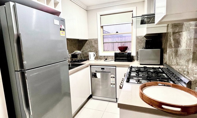Enjoying a peaceful setting with bountiful natural fresh air in a convenient location close to public transport, Located in a beautiful suburb in Prestons, NSW. This home offers Incredible mini Kitchen with large Convection oven perfect for baking bread, gorgeous scenic views, Prestons soccer club sports fields a nice spot for a quick walk, Best Cycling Routes a trailhead that leads to serene views , and beautiful sunrise and sunset views from the window are fabulous and comes with gas and charcoal BBQ facilities.