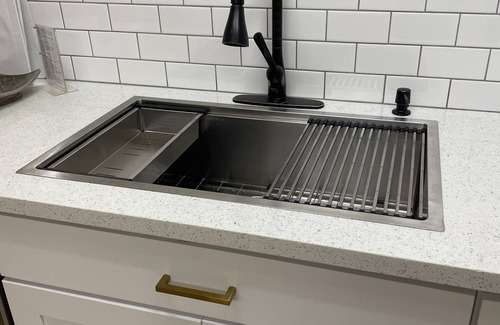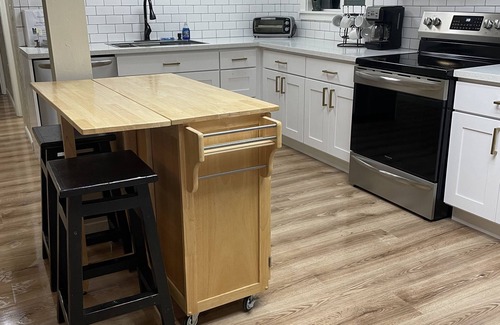Kitchen: Full remodel Jan. 2023. Dishwasher, Pots/pans, coffee maker (no coffee), Keurig, blender, crockpot, toaster oven, microwave, spices