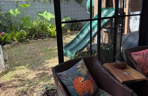 Tampa is waiting for you at this marvelous 2-bedroom townhome. Step into a peaceful retreat with 1 king bed and 2 queen beds, perfect for a relaxing stay. Enjoy the amazing amenities like AC, heating, and a fitness equipment. With 2 bathrooms 1 full equipped with hair dryers and a bathtub/Shower & half bath you'll feel right at home. Additional spaces include a cozy living room with a crib and child bed, plus an office space with another child bed. Fall in love with Tampa and enjoy the magic it has to offer. Enjoy fast Wi-Fi, smart TVs, free parking, and a welcoming space for couples, families, friends, or business travelers. The home accommodates up to 6 guests maximum. Top-rated restaurants, shopping, and Gulf Coast beaches are all within reach your perfect Tampa home base awaits. Enjoy your own townhome to yourself with private entrance. Also includes private outside space with playground and inviting patio area. Everything you need is included Wi-Fi, ironing board, additional bedding, family, friendly, including toddler, bed, and pack and play car seat and booster seat for eating. Complementary exercise equipment. Outdoor and indoor eating area stainless steel appliances.Free parking both in the driveway and additional free parking across the street.