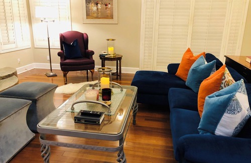 Elevated hilltop residence, offering panoramic views of San Gabriel Valley, mountains, and city lights. Sleeps 12 in 6 bedrooms, featuring a lavish master suite and office. Spacious family room for gatherings. LQuick access to 60, 57, 10, and 91 freeways. Abundant restaurants serving diverse cuisines. Your VIP escape! Ideal for group golfers, with access to numerous courses across LA, Orange, Riverside, Ventura, and San Bernardino Counties. Tourists will adore it. Self-check-in via smart lock. Easy access to all the tour attractions. One-of-a-kind property you will enjoy for your trip.