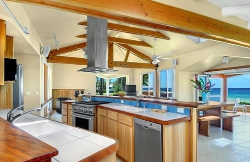 Great room design with gourmet kitchen and large seating areas all with ocean views and air conditioning