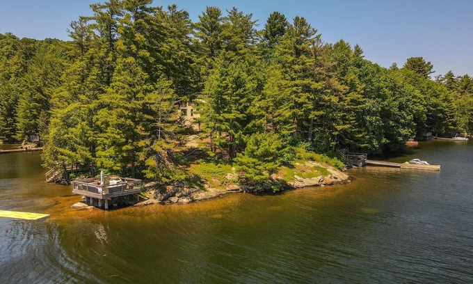 It’s absolutely perfect for these times, when you want and need an escape. This property has all the privacy you’ve been dreaming of and different buildings for privacy, working, and/or separation. And three docks for sun or shade all day and maximum space for family and/or friends. The neighbors’ cottages are a good distance away and tucked back, so you don’t even know they are there.