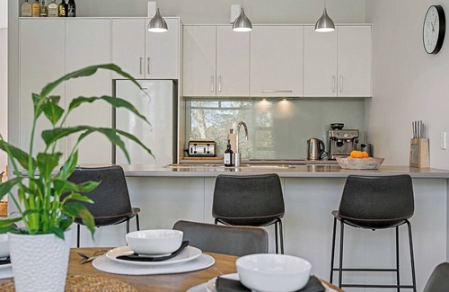 Loch Haven is a single level, 3-bedroom, 2-bathroom spacious home with open plan kitchen-dining area designed with indoor-outdoor flow onto a choice of patios so you can follow the sun all day long. The floor to ceiling glazing in the dining looks directly across the greens of the Kinloch golf course with the landscaped garden and mature planting, ensuring privacy right around the house.