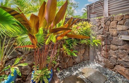 Spend time on the cozy outdoor lanai taking in the views of the surrounding Kaua'i landscape. Plan a meal al fresco and take advantage of the built-in BBQ gril and comfortable dining area.