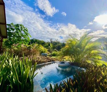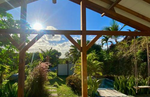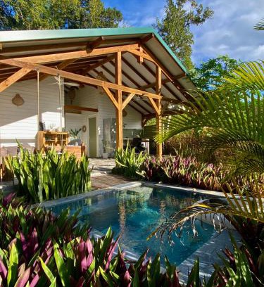 Providing a garden, Lodge Kara provides accommodations in Grand-Bourg. This property offers a private pool, free Wifi, and free private parking. Leading onto a terrace with pool views, the air-conditioned vacation home consists of 2 bedrooms and a fully equipped kitchen. Towels and bed linen are featured in the vacation home. The property has an outdoor dining area.