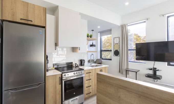 Loft 201 | Rooftop | Downtown is located in Rimouski-Neigette. Loft 201 | Rooftop | Downtown provides accommodation, featuring Kitchen, Air Conditioner, Security/Safety, among other amenities. This Apartment features Kitchen, Air Conditioner, Security/Safety, to make your stay a comfortable one.
