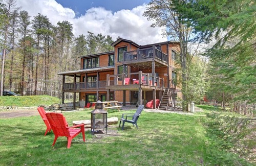 We have a private lake in front of the chalet that only our guests can use it, we have a nice dock where you can swim off of or sunbath on it. Our guests have access to paddle boards and a pedal boat free of charge, and we also do kayak rental. Our guests have access to two outdoor fireplaces, one in the front of the chalet next to the lake, and in the back of the back of the chalet where you can do bonfire in the summer or winter.