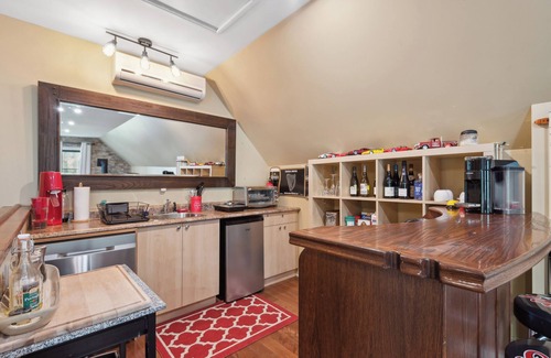 A living room, a BBQ grill, a fireplace, and air conditioning are featured at this 1-bedroom, 1-bathroom rental. Bathroom amenities include a hair dryer, towels, and toilet paper. The kitchenette is equipped with an oven, a stovetop, and a refrigerator, as well as a coffee maker, an electric kettle, and a microwave. And because there's a washer and dryer, you can go a bit lighter on your packing.
