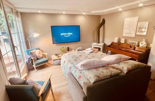 Offering a garden, Loft de estilo industrial con jardín y garaje privados provides accommodations in Valladolid. This property offers access to a balcony, free private parking, and free Wifi. Staff on site can arrange a shuttle service. Opening onto a patio with inner courtyard views, the apartment consists of 1 bedroom. Providing a terrace with garden views, this apartment also offers a flat-screen TV, a well-equipped kitchen with a dishwasher, an oven, and a microwave, as well as 1 bathroom with a shower and a hair dryer. There's also a seating area and a fireplace. A continental breakfast is available at the apartment. There is an on-site snack bar, and during warmer months you can make use of the barbecue facilities. Sightseeing tours are available nearby. Valladolid Train Station is 2.4 miles from Loft de estilo industrial con jardín y garaje privados, while Casa-Museo de Zorrilla is 4 miles from the property. Valladolid Airport is 10 miles away, and the property offers a paid airport shuttle service.