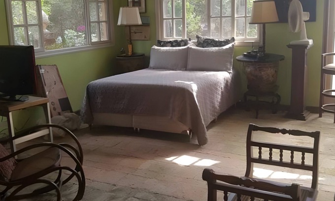 Nestled in Embu das Artes, this 1-bedroom, 1-bathroom cottage brings it all within your reach. Fans of nature and the outdoors will love being 26 minutes by car from Villa-Lobos Park and 16 minutes from Parque das Hortensias. With the property's convenient covered onsite parking, you'll be ready to make the quick 6-minute drive to Embu das Artes Historic Center or the 4-minute drive to Parque do Lago Francisco Rizzo.