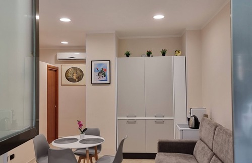 NEW Bright pied-à-terre apartment, equipped with all comforts, excellent as a HOLIDAY HOME: Completely independent entrance: Open space living room (super-equipped hideaway kitchen). Corridor and sleeping area, divided by a pocket door. Bathroom with all services. Water tank with autonomous autoclave and Air conditioning.