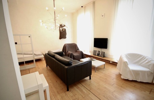 This beautifully cozy loft with its high ceilings and many windows appears spacious and open; it is lovingly furnished with cozy details and high-quality designer lights. The legendary "Bird Bird Bird" lamp draws the entire room and gives it a luxurious flair.
