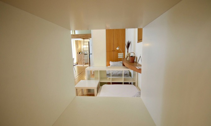 The 4 beds are placed separately in the large room and partly separated by room dividers; the beds can easily be put together to form a double bed. There is a seating area on the flat screen TV, a reading chair and a dining table.
