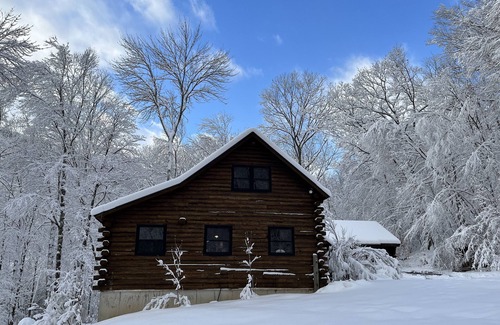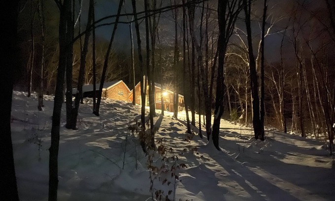 Our cabin is on 11 acres, and we have only one neighbor in the summer only. The cabin is on the side of a private mountain at 1300 feet elevation so there is an entire mountain to hike or snowshoe(all sizes available for your use). Our porch overlooks a brook that passes right by the house. Because it is remote, cell phone service is spotty at the cabin, but you can use WIFI calling or the land line, we stream TV and have a ROKU and smart TV if you have Netflix/Amazon Prime/HULU etc. subscriptions. WiFi is good unless you are streaming and on phones and computers at the same time. There are sleds , snow shoes and snow tubes as well.