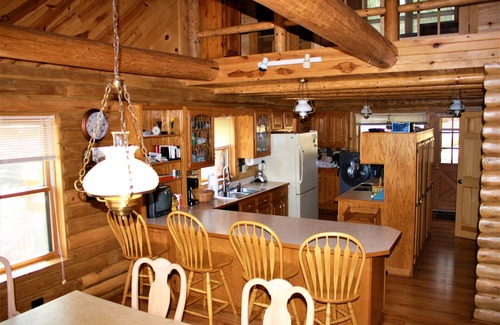 Log home, on the northern end of The Great Sacandaga Lake. Perfect combination of tranquility/seclusion with access to Saratoga Springs only 20 miles away. The 172 feet of lakefront is nestled into a calm and quiet (but not stagnant) cove that is utilized only by residents of the cove. The 3 Bedrooms are set up like suites (perfect to hold a full family), each with their own bathroom (each bedroom has a full or queen platform bed PLUS a twin over full bunk bed). There is an additional full bathroom in the unfinished basement. The sunroom also serves as a potential additional bedroom and also has a brand new daybed with trundle pull out. Each room has a Flatscreen TV and the home is equipped with Time Warner Internet. Verizon Wireless service exists within the immediate area of the house. Conveniences include a washer and dryer on the main floor. There is NO smoking permitted inside of the home. Unfortunately, we cannot accommodate pets of any kind due to homeowner allergies.