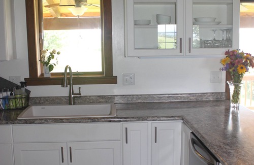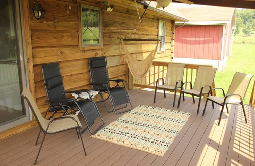 The log home has a complete kitchen with new appliances and all the tools you will need to create meals onsite for your friends and family. Enjoy eating around the table (seats 8) or head out to the deck where mountain views and farm life will always be available to enjoy. At dusk you may want to take a stroll down the lane which runs through the ridge of the farm or as evening settles you may enjoy a small fire in the fire pit.