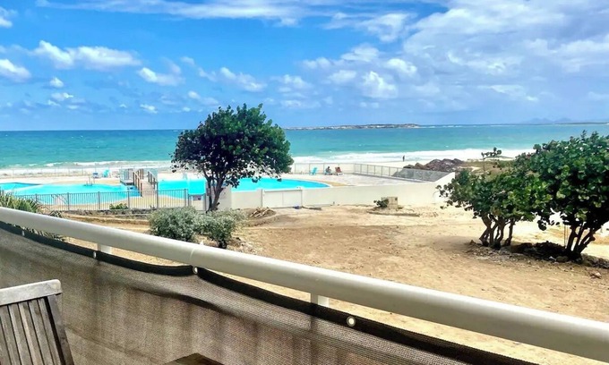 Situé en front de mer cet appartement a une vue imprenable sur la plage de la Baie Orientale. Piscine de la résidence à 2 pas , vivez l’experience d'un dépaysement total. Appartement tout équipé, climatisation, lit king size, canapé lit 2 places,. lave-vaisselle, lave-linge, draps et serviettes fournis. Cuisine équipée, salle de bain avec douche antillaise.