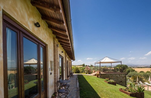 The location of the house is very panoramic and overlooks the swimming pool, the park, the gym and the panoramic area overlooking Assisi and Monte Subasio. The view descends to the Umbrian Valley and the Basilica of Santa Maria degli Angeli to go up to the left towards Bettona, Torgiano and Perugia; to the right towards Spello, Foligno and Montefalco. Behind us the wooded Monti Martani, Todi, Spoleto and Deruta and the famous walks of Perugia Vecchia.