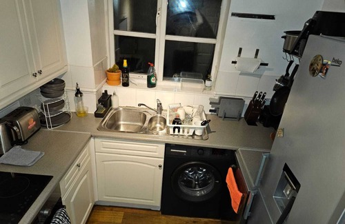 While you're here, you can enjoy all the comforts of home and more, including a refrigerator and an oven, as well as a stovetop and a dishwasher. Other amenities include towels, an electric kettle, a toaster, and an ironing board.