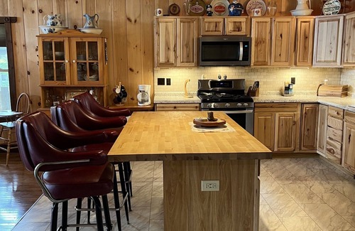 Lonestar Ponderosa - A tip of the hat to your host's many years spent in Texas. Throughout this wonderful waterfront home you will find many tributes to Texas. They say, "everything is bigger in Texas", and Lonestar Ponderosa has more square footage of outdoor decking than some homes have total square feet. Enjoy 1,200 square feet of decking, most of which faces the beautiful waters of Arnold Lake, one of the area's cleanest bodies of water. Arnold Lake is a pristine 63.7 acres of water, locally known for its great brown and rainbow trout fishing.