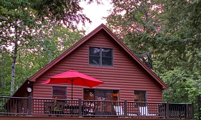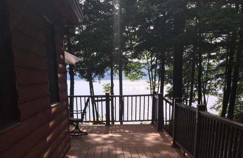 Watch the sunrise from the deck or the dock. Great location, quick boat ride to Belgrade Village which has Day's store, fuel, deli, pizza, post office, and an ice cream. This home has an open concept. The downstairs has two bedrooms each with a queen bed. One bathroom with shower stall. The upstairs has one loft and 1 bedroom. The loft has 2 full beds and 3 twins and the upstairs bedroom has 2 twin beds. Sheets and towels are not provided. There are privacy dividers partially separating the loft. There are also plenty of movies to watch on the flatscreen during downtime. The home is surrounded by two vacant wooded lots making it very private, offering 300’ of waterfront frontage. The home includes a large dock with swim ladder, plenty of fishing poles, firepit, a hammock on the water, picnic table, deck furniture with lounge chairs, noodles, rafts, plenty of board games, outdoor games, etc. Waking trails within a five minute drive with beautiful views. Kitchen has microwave, toaster, coffee maker, Keurig coffee maker as well, juicer, blender, etc. This home has a wrap around composite deck.