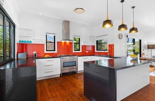 Crisp white interiors, plush furnishing and a mix of wooden floorboards and tiles throughout the home. 5 substantial bedrooms, kids play room, separate office, 3 bathrooms and 2 separate living areas make this home ideal for 10 guests, and there are endless opportunities to relax, work from home, spend time together, or unwind privately. Each room has a built-in robe, including a master bedroom with impressive ensuite and private access to the back deck. The home is perfectly poised for short-term family stays, or longer retreats, with a home office and fully-equipped kitchen to make whipping up a gourmet meal in no time a breeze.