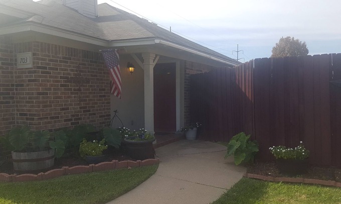 Enjoy easy access to everything! Minutes from DFW Airport, as well as hwys 121, 635, and 114. You can even walk to the Gaylord Hotel and the Grapevine Historic District. The master bedroom in this 1/2 duplex features a king bed, TV, large closet, and full bathroom. The secondary room has a queen bed, a twin loft, and a TV, with a full bathroom right across the hall. This rental has a 30-day minimum and includes all utilities, linens, kitchenware, wifi, etc. Inquire about the length you need.
