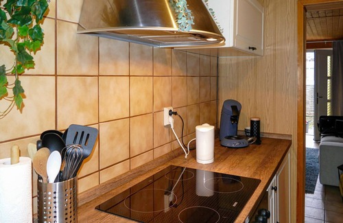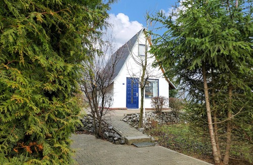 This charming vacation home is situated in a rural location and is ideal for a small family with pets. On two floors, you will find a cozy interior with lots of wood and beautiful furniture. On the first floor you will find the living room with fireplace, the kitchen and a bathroom. A steep staircase leads to the upper floor, where there are two bedrooms with sloping ceilings.