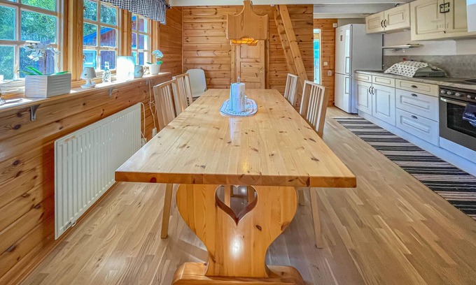 This cozy house welcomes you in an attractive location near Lake Bolmen. Use it as a base for a wonderful break with activities in the surrounding area, it is the ideal place for nature lovers and guests looking for relaxation and peace. Settle down here after your excursions, dine together at the long dining table with a beautiful view outside and make plans for the days ahead. Warm colors and lots of wood in the furnishings give the vacation home its cozy expression.
