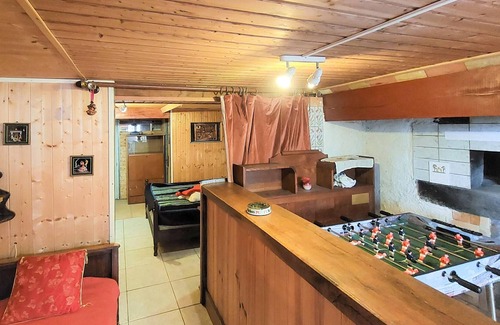 The apartment welcomes you in the hills of Thiers and charms you with cozy rooms with a homely interior, whose rustic elements are not to be overlooked. The wood-paneled walls and ceilings give the apartment its rustic charm. Relax here, for example, as a couple with a child in a rural location. Back from your excursions in the region, you can make yourself comfortable in the living room, play foosball and chat until late in the evening.