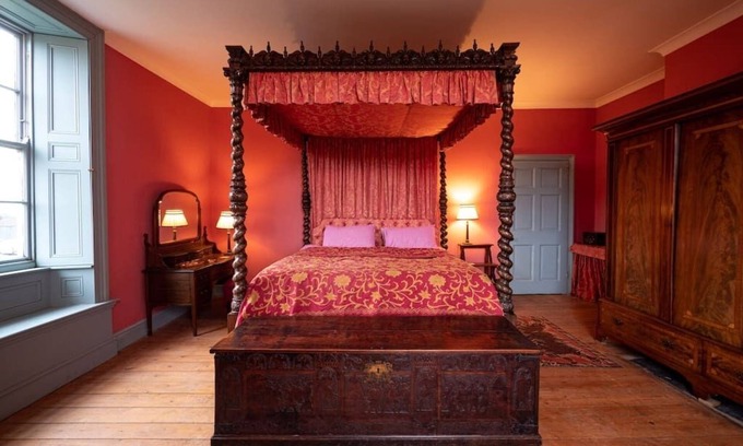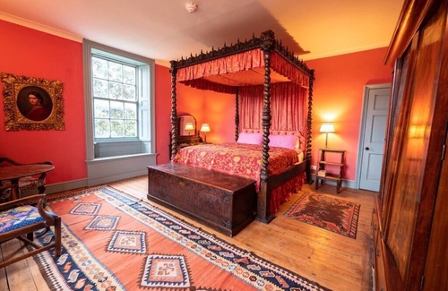 Large bedroom with a super-king size four poster bed, antique furniture and sweeping countryside views.