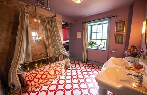 Your beautiful ensuite bathroom, has step-access, a large copper freestanding bath for two, a waterfall shower with views towards the Lincolnshire wolds.