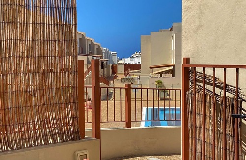 This large and ample townhouse is situated in the heart of Los Cristianos, at just a few minutes walk to the beach, town centre and port. The property is ideal for family holidays with children or grandchildren. The property overlooks the complex swimming pool, with terraces both back and front of the house, in addition there is a roof terrace with jacuzzi where you can relax in the warmth of the all year round Tenerife sunshine. Within easy walking distance you will find everything you will need to ensure your holiday is one to remember i.e. Supermarkets, restaurants, sports & entertainment bars and the beach.