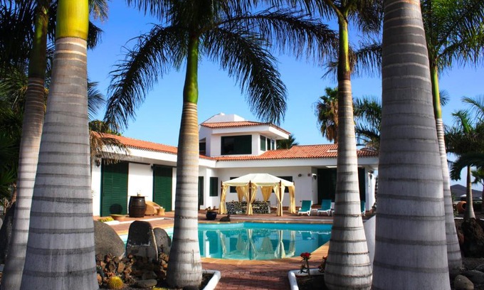 Featuring a large garden with sea views, a private outdoor pool and barbecue facilities, Los Fondos is a 5-bedroom holiday home located in Arona. Free WiFi and free parking are offered. The living room comes with a fan and flat-screen TV with satellite, cable and pay-per-view channels. There are 3 bathrooms, with a hairdryer and bathrobes. The large well-equipped kitchen includes a dishwasher and washing machine. Towels and bed linen are provided. Set in a tranquil area, the property is only a 15-minute drive from Tenerife South Airport.