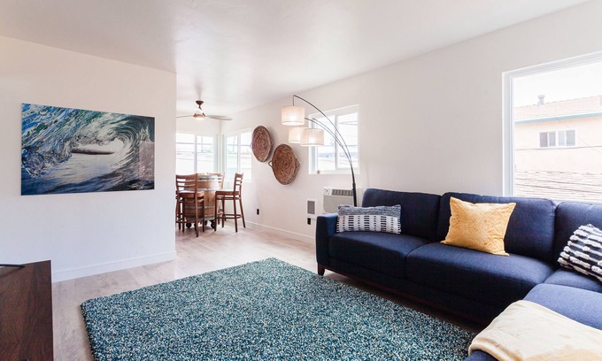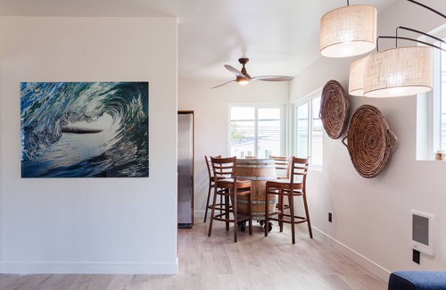 This home was built with the spirit of adventure, featuring ocean inspired design themes and a cozy relaxed vibe. Our additional amenities include soft top surf boards, boogie boards, beach chairs, a large jetted and heated bath tub, free coffee, free cooking supplies, and a refurbished nintendo 64. Enjoy this brand new luxury beach condo, located less than two blocks from the water!