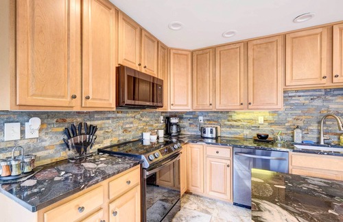 KITCHEN: Coffee maker, stainless steel appliances (dishwasher, microwave, fridge, stove/oven), breakfast bar, toaster, cooking basics & spices
