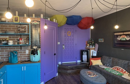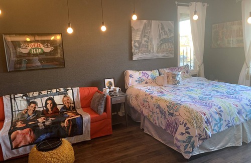 you will have everything you need to cook a meal , relax, work ... it is attached to the main home which also is a short stay rental! I have added some games, lego, …… all kinds of Friends memorabilia. so cozy you will want to just relax on the couch, then on the bed, table while watching friends, Netflix, cable...