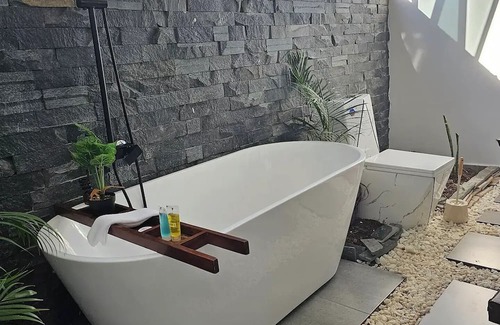This modern condo or apartment is located in Kitende, along Entebbe Road in Kampala, and offers a fully equipped kitchen, Wi-Fi, and access to a pool and gym. The stylish space features an open concept layout, modern tile finishes, and antique designs, accommodating 2-3 guests in 1-3 bedrooms and 3-4 bathrooms. Enjoy lake views, smart TVs, workspace, and high-speed internet during your stay.