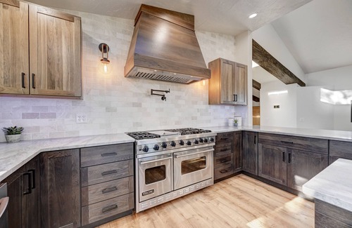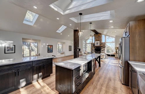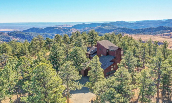 This is the romantic mountain vacation or reunion location you’ve dreamed of! This completely remodeled mountain-top home with fabulous city + mountain views sits on 10 acres of your own private ranch, just minutes from Golden. The home was meticulously remodeled with the latest features, smart technology & modern design. Fabulous new kitchen with Viking stove & custom cabinetry and expansive granite counters. The kitchen is open to the great room, which features an impressive stone fireplace framed by views of the city. The bathrooms are all new with automatic heated toilets & custom cabinetry. You will love the incredible new professional quality media room, work out room w/ equipment, & spacious main level game room and bedroom, all with wonderful light & windows to bring the outside in, including the delightful sunroom for morning coffee. All new professional grade flooring, & all new lighting throughout the house controlled by smart switches or your phone. The very private and romantic master retreat features city lights views, deck with snowcapped views, A/C, and luxurious master bathroom with heated floors & shower. The steam shower w/views is a dream! The home also has another steam shower, and a fabulous sauna! Outside, you will find an incredible 2,400 ft. of deck w/ city + mountain views. Relax under the stars in the hot tub, enjoy the deer & elk passing through or throw a deck party. Utilize the backyard playhouse as an away-space for the kids. It has the best views in town! Take advantage of the flat lawn + putting green for all kinds of outdoor activities. Weddings have taken place here! The oversized, heated garage is perfect for protection from the winter snows for 1 vehicle. And plenty of parking on the paved driveway. With high-speed internet, you won't need to leave this tranquil, private hill-top retreat. All this just 15 minutes to Starbucks in Golden and easy access to Boulder and Denver!