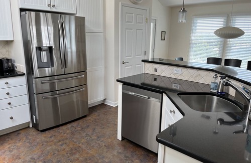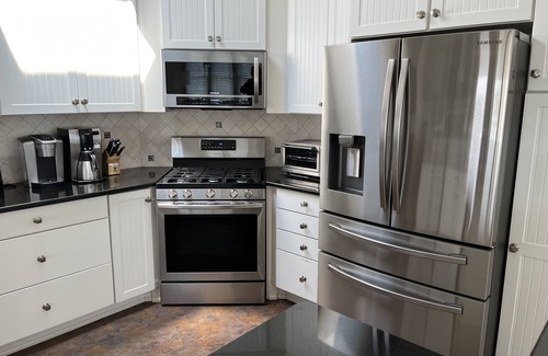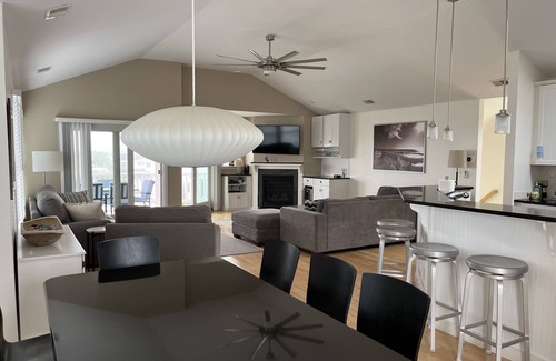 The lower level includes a large living room with 50" 4K flat screen TV and adjacent deck for outdoor relaxing. There is a 2nd Suite with a queen size bed, TV, ensuite bath with shower, a third bedroom with a queen bed, and a fourth bedroom with two twin beds (easily pushed together to make a king). The lower level has a laundry room in addition to a full bathroom with a bathtub.