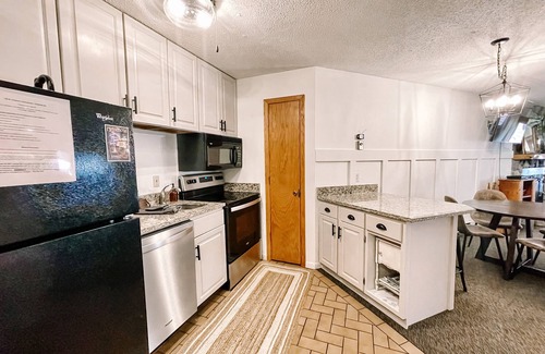 This condo comes with a cozy fireplace, full bath, indoor/outdoor pool, hot tub, Moguls restaurant on site, and a kitchen with all the appliances. 1 bedroom/sleeps 4