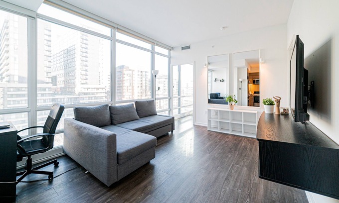 Lovely 2 bed 2 bath condo (CN Tower view) +parking has 2 Bedrooms , 2 Bathrooms, and max occupancy of 5 people. The minimum rental for this property is 1 nights, but this can change depending on the season you plan on staying. Previous guests have given good rated it, and VRBO labeled it a top-rated Apartment because of the excellent services rendered by the owner or manager of this Apartment, and has consistently provided great experiences for their guests. Most families or guests that use it recommend it to their friends and some of them are repeat guests. Apartment has a friendly neighborhood, and the Downtown Toronto has interesting places to visit. If you want to learn more about the Apartment in Downtown Toronto, such as places to visit and things to do nearby, you can check below to learn more.