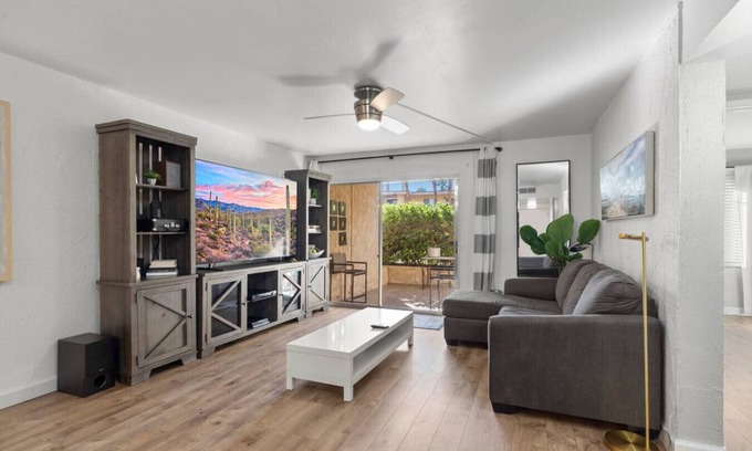 This lovely space is located in the heart of Scottsdale & a short 5 minute Drive/Uber to Old Town Scottsdale! This cozy unit is the perfect home base to explore all Arizona has to offer! Featuring 2 bedrooms, 2 bathrooms & an open living/kitchen concept, there is ample space for you and your group and privacy when needed! Pool is located directly behind the unit for anyone in the group who may want to enjoy! A lovely patio offers the perfect setting for a morning coffee on those crisp morning!